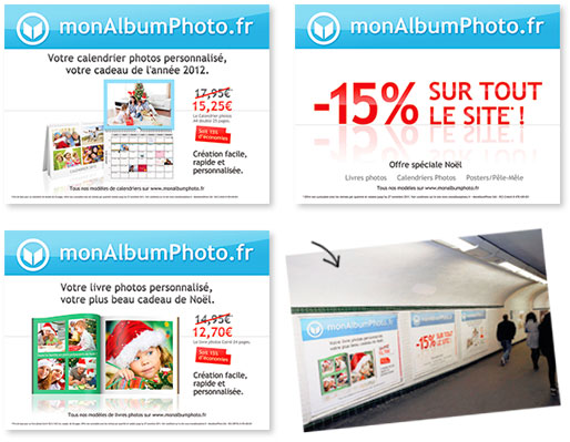 3 Panneaux publicitaires destinés au métro parisien Campagne Noël 2011 |
